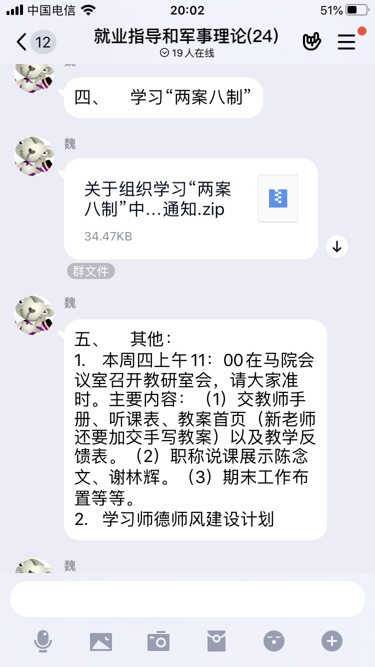 教研室魏立娜主任上传文件至QQ群,并把学习重点一一分享给各位老师。老师们学习完之后都纷纷发表心得体会,通过学习,我们更加明确发现学生出现传染病早期症状时及时上报及处理的流程,以确保做到疑似传染病人的早发现、早排查。