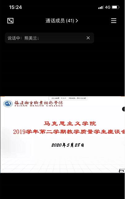 为贯彻落实学校关于疫情防控期间教学组织与管理工作的精神,及时发现解决疫情期间线上教学出现的问题,进一步完善教学管理,确保在线教学效果,持续改进思想政治理论课教学实效性,马克思主义学院(以下简称“马院”)于2020年5月28日下午,通过QQ网络视频平台组织召开疫情期间2019学年第二学期教学质量学生座谈会。马院院长熊美兰、各个教研室主任、全体校教师以及各系部30名学生代表参会,会议由马院教学秘书林美辰主持。