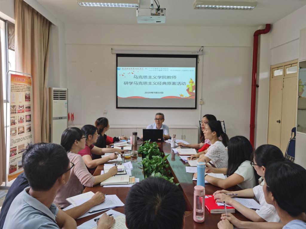 2020年9月10日上午,马克思主义学院全体思政教师在会议室举行了第一次马克思主义经典原著研学活动,此次活动由马克思主义学院院长熊美兰主持,概论教研室主任胡济林主讲。