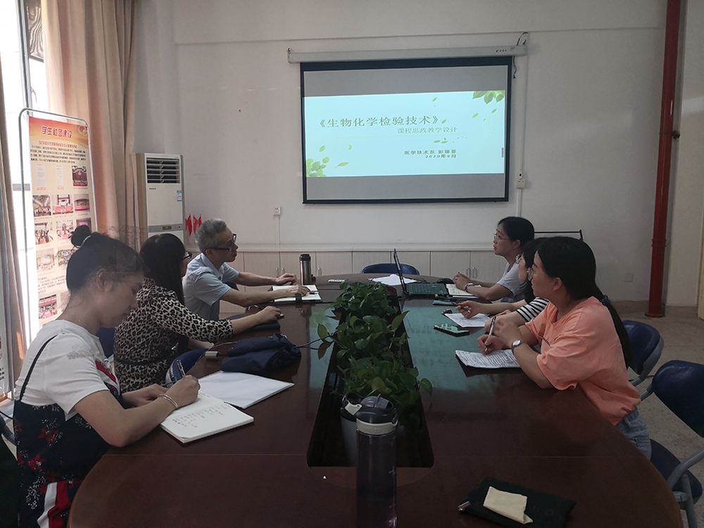 为深入贯彻落实教育部《关于印发高等学校课程思政建设指导纲要的通知》(教高[2020]3号),落实立德树人根本任务,挖掘和丰富专业课程思政育人元素,推进学院“课程思政”教学改革工作深入开展,2020年9月15日上午,马克思主义学院熊美兰院长、胡济林老师、邱萍老师与结对系部——医学技术系参加“课程思政”教学设计竞赛的彭臻菲、过丹丹、吴清清3位教师,在马克思主义学院会议室举行“课程思政”教学设计竞赛研讨会。