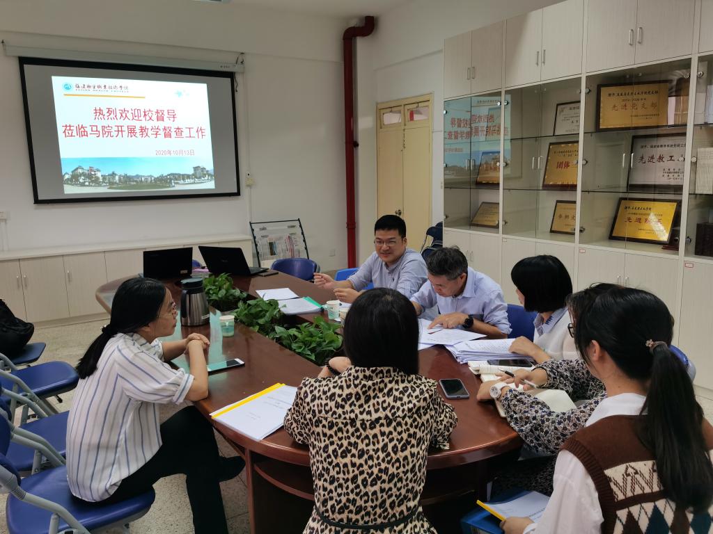为了维护教学秩序,严格教学规范,2020年10月13日下午,学校督导室主任王珊珊、校督导欧春木老师、叶榕老师莅临马克思主义学院进行期初教学检查,马克思主义学院院长熊美兰、办公室主任杨盈及各教研室主任参加了此次检查。