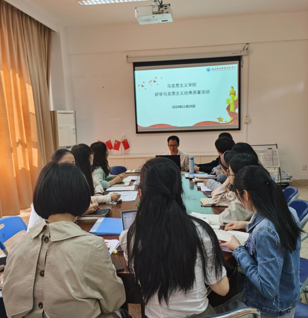2020年11月26日下午,马克思主义学院全体思政教师在会议室举行了第八次马克思主义经典原著研学活动,此次活动由马克思主义学院院长熊美兰主持,张天文老师主讲,研学内容为恩格斯的《自然辩证法》。