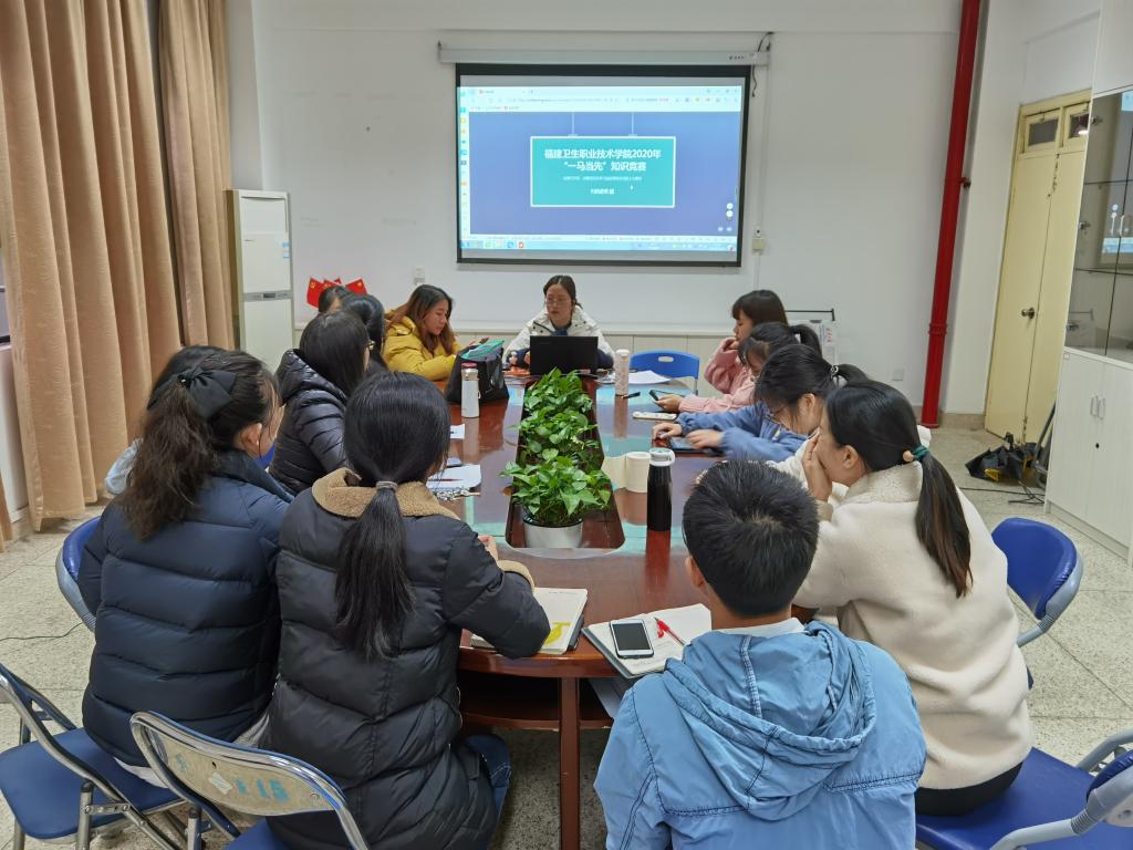 2020年第五季福建省高校大学生学习马克思主义理论“一‘马’当先”知识竞赛决赛即将开始举行。为了让参赛选手更好适应比赛规则和比赛节奏,2020年12月16日下午,马克思主义学院在行政楼107会议室举办2020年“一‘马’当先”知识竞赛模拟赛。19助产304班沈纪洪、19康复302班陈诗钦、19康复302班廖婉洋三位参赛选手参加了模拟赛。马克思主义学院院长熊美兰、副院长来朋珍、此次比赛指导老师团队、一部分思政课教师出席了活动。