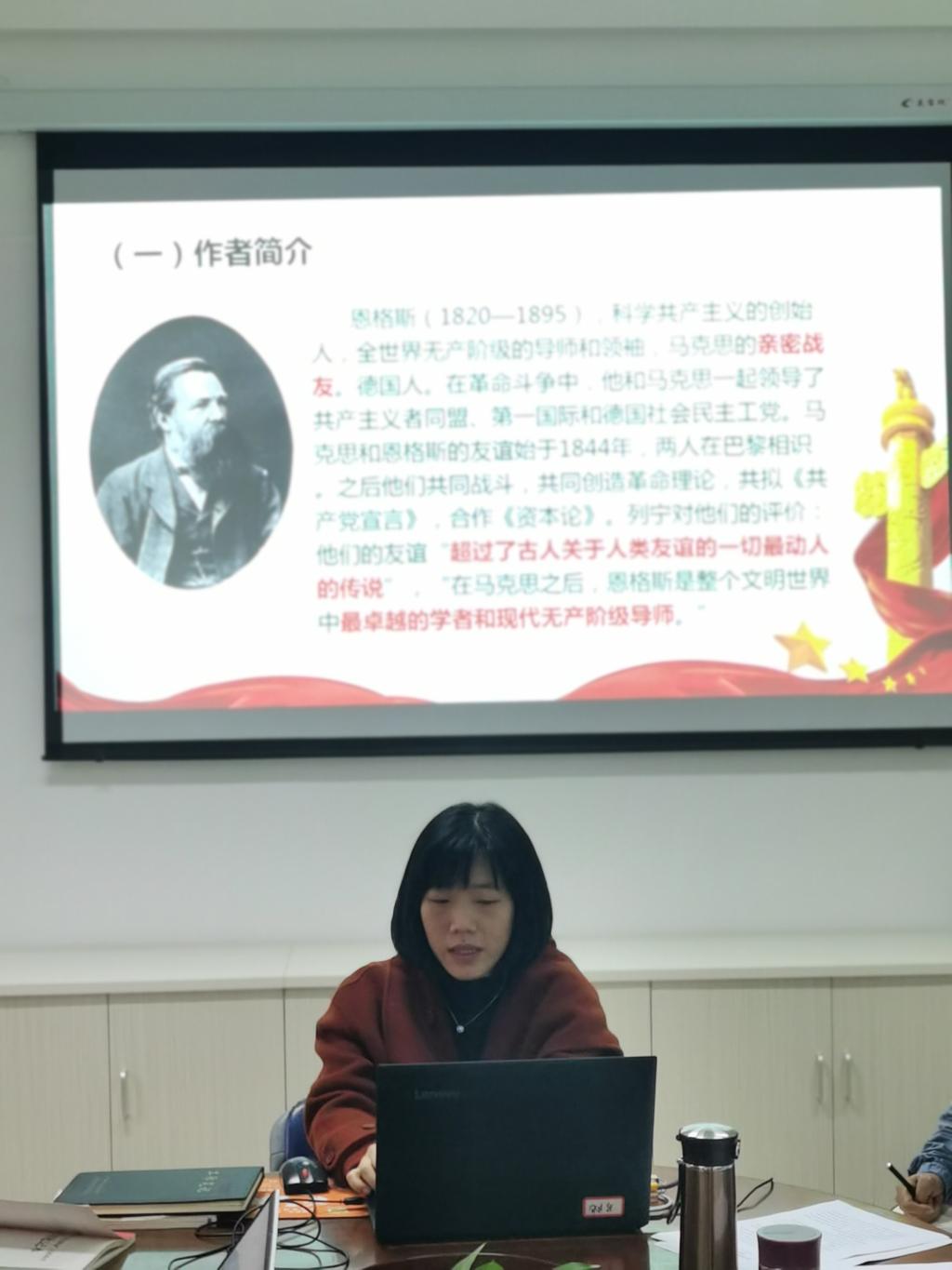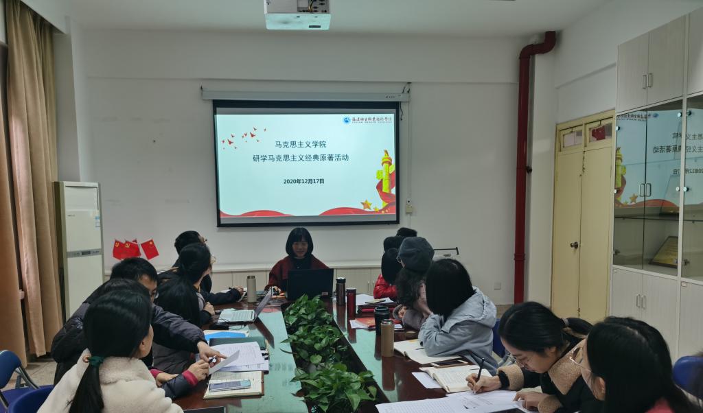 2020年12月17日上午,马克思主义学院全体思政教师在会议室举行了第十次马克思主义经典原著研学活动,此次活动由马克思主义学院院长熊美兰主持,郑冰老师主讲,研学内容为恩格斯的《在马克思墓前的讲话》。