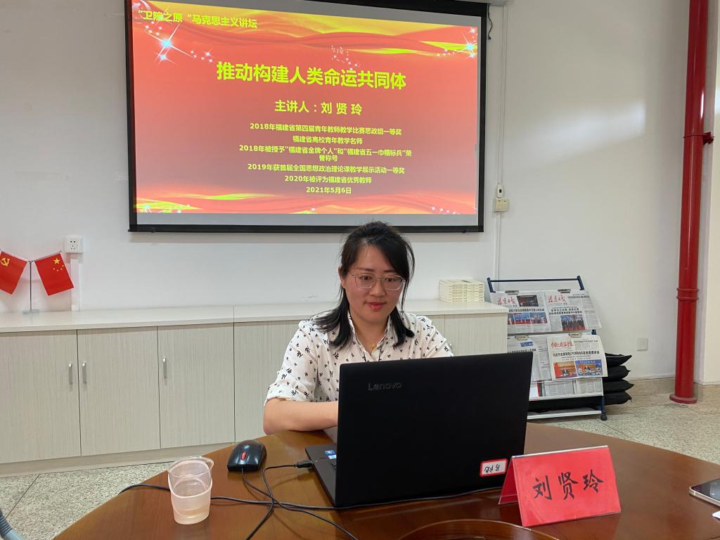 为加强与高职院校思政课教师的交流,学习优秀教师的教学方法,提高我校思政课教师教学能力,2021年5月6日上午,马克思主义学院邀请了福建商学院刘贤玲老师为我们做《推动构建人类命运共同体》的教学示范。此次教学示范活动由马克思主义学院院长熊美兰主持,马克思主义学院全体专兼职教师参加了此次教学示范活动。
