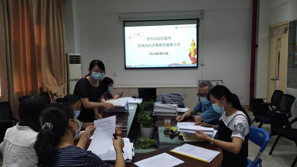 为加强教学质量监控,保证新学期的教学工作有序、有效运行,确保学院教学工作有个良好的开端。2021年9月23日下午,校督导王珊珊、陈钰两位老师到马克思主义学院,对2021-2022学年第一学期及上学期期末教学管理工作开展督查。马院院长熊美兰、副院长来朋珍、教学秘书吴薇及各教研室主任参加了此次检查。