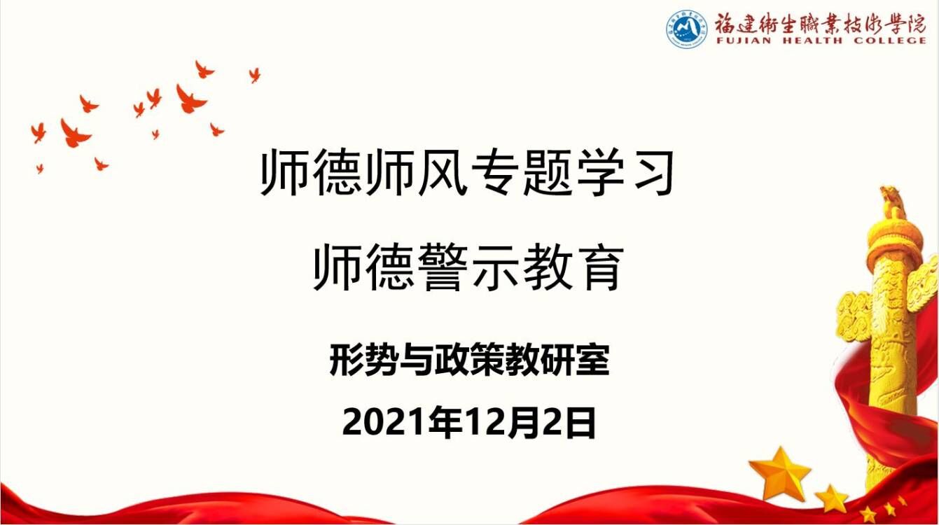 为深入学习贯彻习近平总书记关于教育的重要论述和师德师风建设的重要指示精神,2021年12月2日上午,马克思主义学院在107会议室召开师德师风警示教育大会,学习活动由马克思主义学院院长熊美兰主持,形势与政策教研室全体教师出席。
