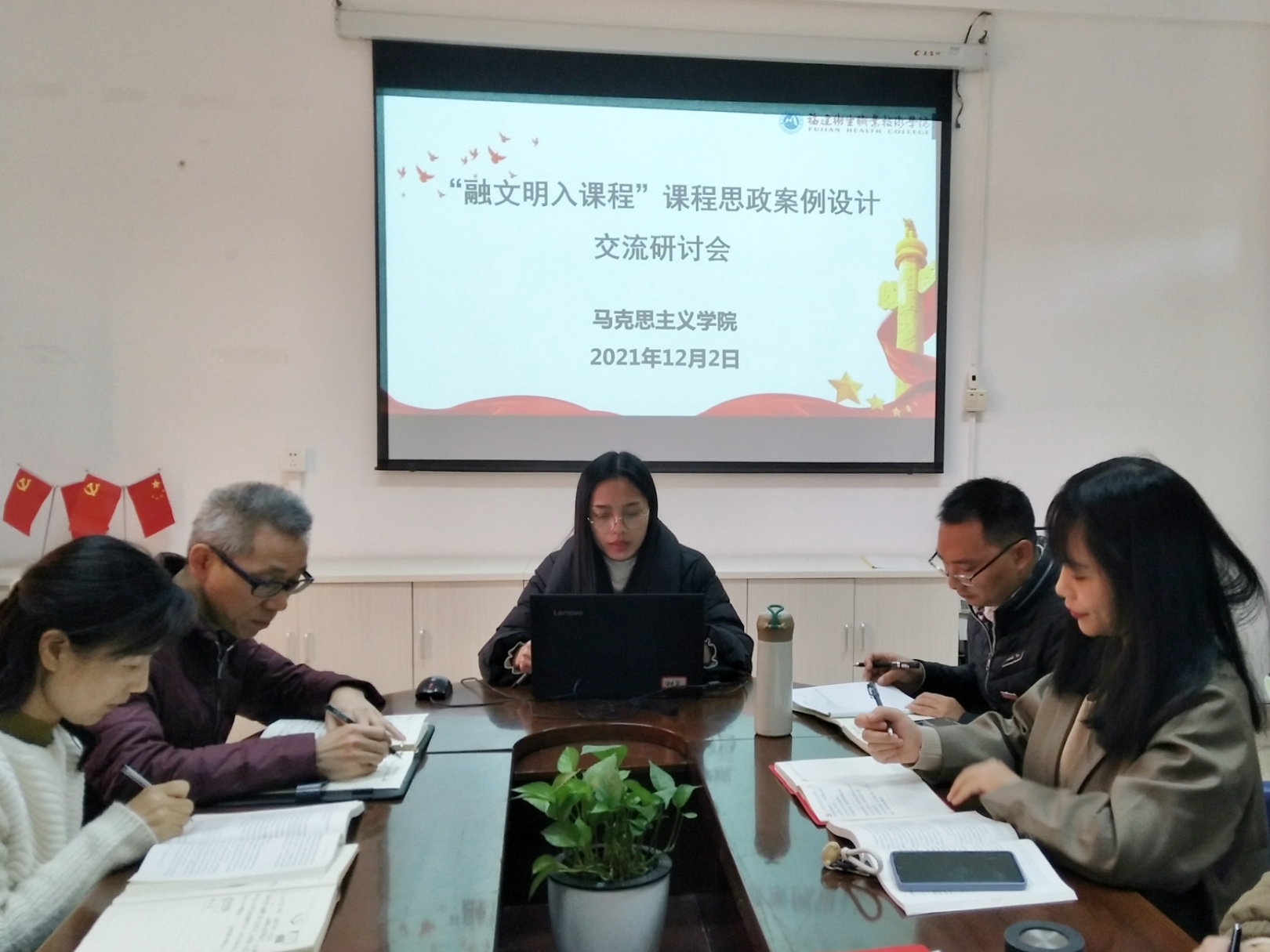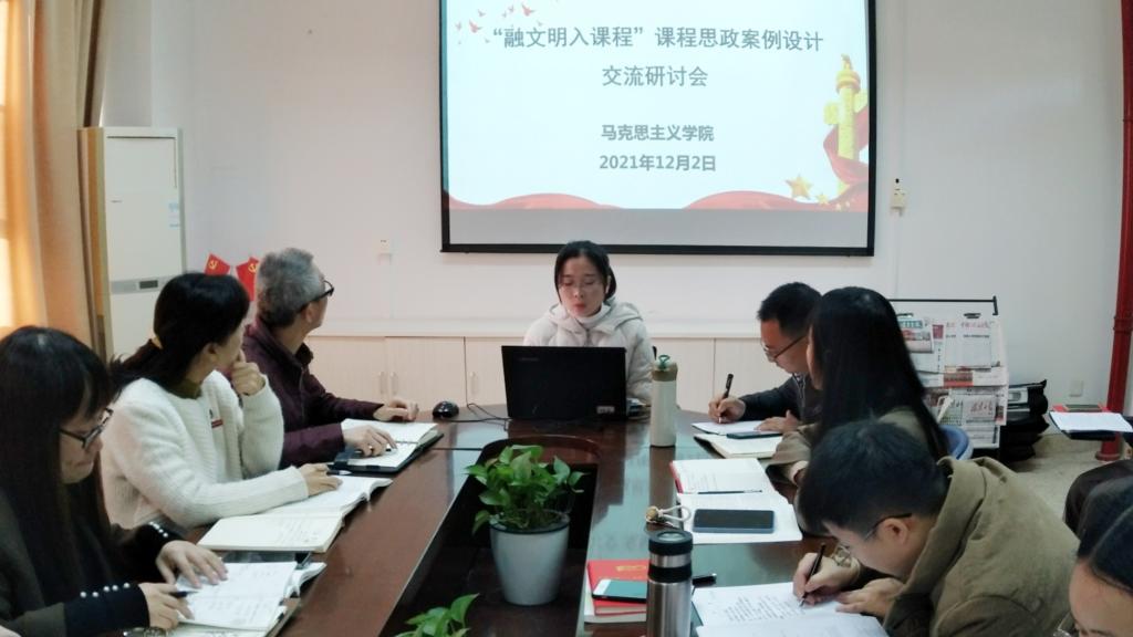 为深入贯彻落实习近平总书记关于教育的重要论述和全国教育大会精神,推进课程思政建设,切实加强作风、教风、学风建设,2021年12月2日上午,马克思主义学院在107会议室开展“融文明入课程”课程思政育人教学研讨活动。
