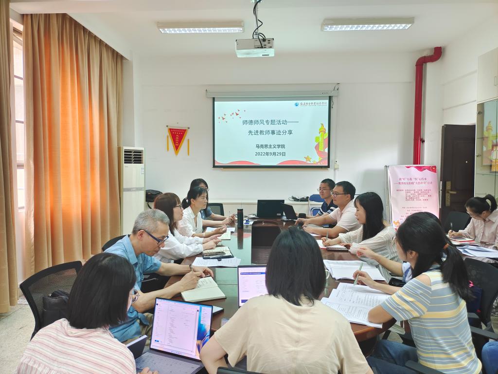 为加强师德师风建设,增强教师的立德树人责任感与使命感,2022年9月29日上午,马克思主义学院开展师德师风专题活动——先进教师事迹分享。