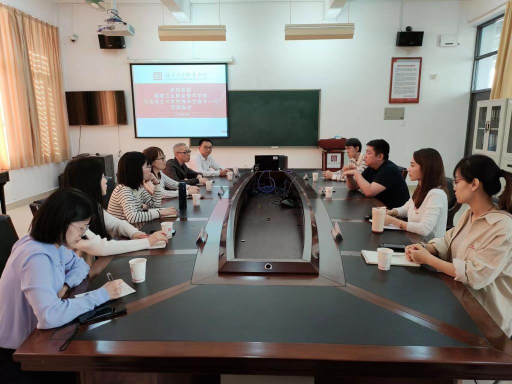 2022年10月21日下午,马克思主义学院一行6人在熊美兰院长的带领下,前往福建艺术职业学院马克思主义学院参观学习,受到了郑元凯院长的热情接待。此行的主要目的是学习他们在省级双带头人教师党支部建设、教学科研和课程建设等方面的成功经验。