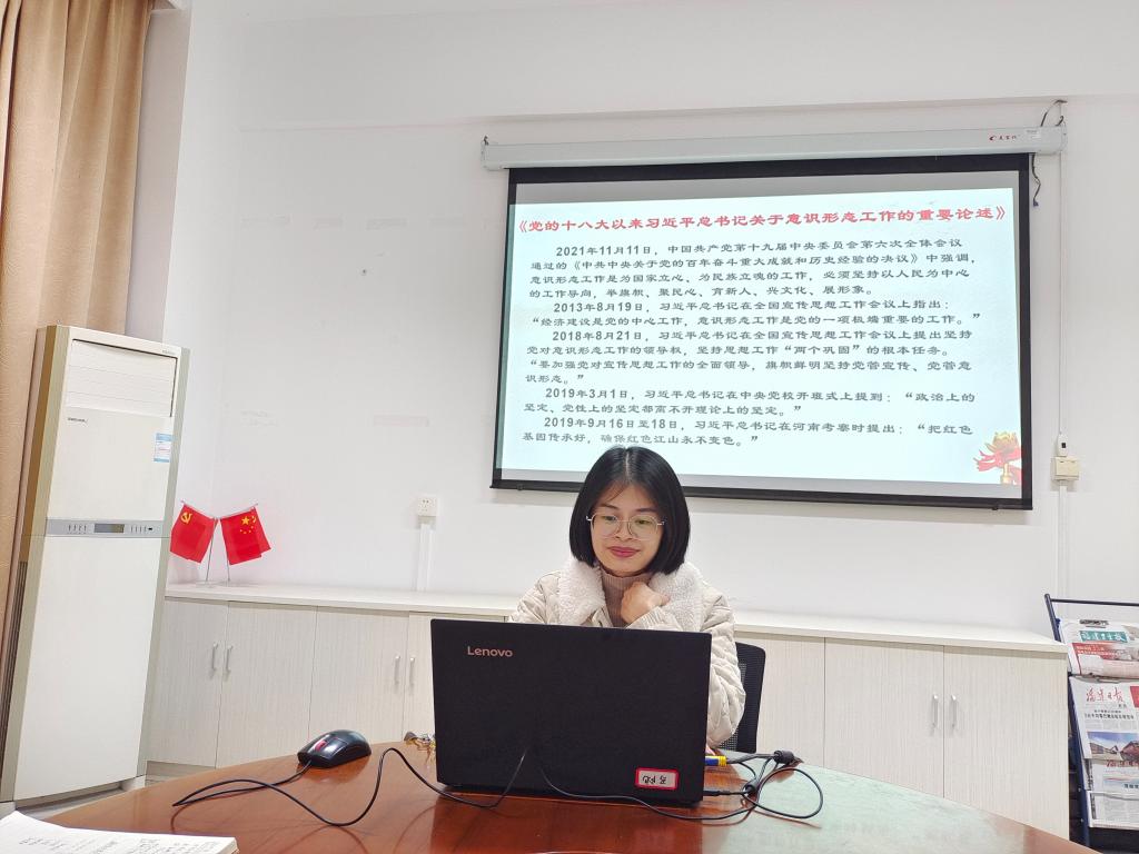 接下来,由罗芸领学习近平关于意识形态的相关讲话内容。她强调:不断增强社会主义意识形态凝聚力和引领力,打牢全党全国各族人民团结奋斗的思想文化基础,是做好新时代意识形态工作的根本任务和基本遵循。