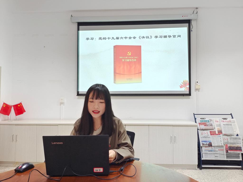 张晨琳分享了学习党的十九届六中全会精神的感悟。她指出:作为党员教师,我们要深入学习贯彻党的十九届六中全会精神,积极响应党中央号召,大力弘扬和践行伟大建党精神,为办好人民满意的、有温度的教育积极贡献自己的力量。