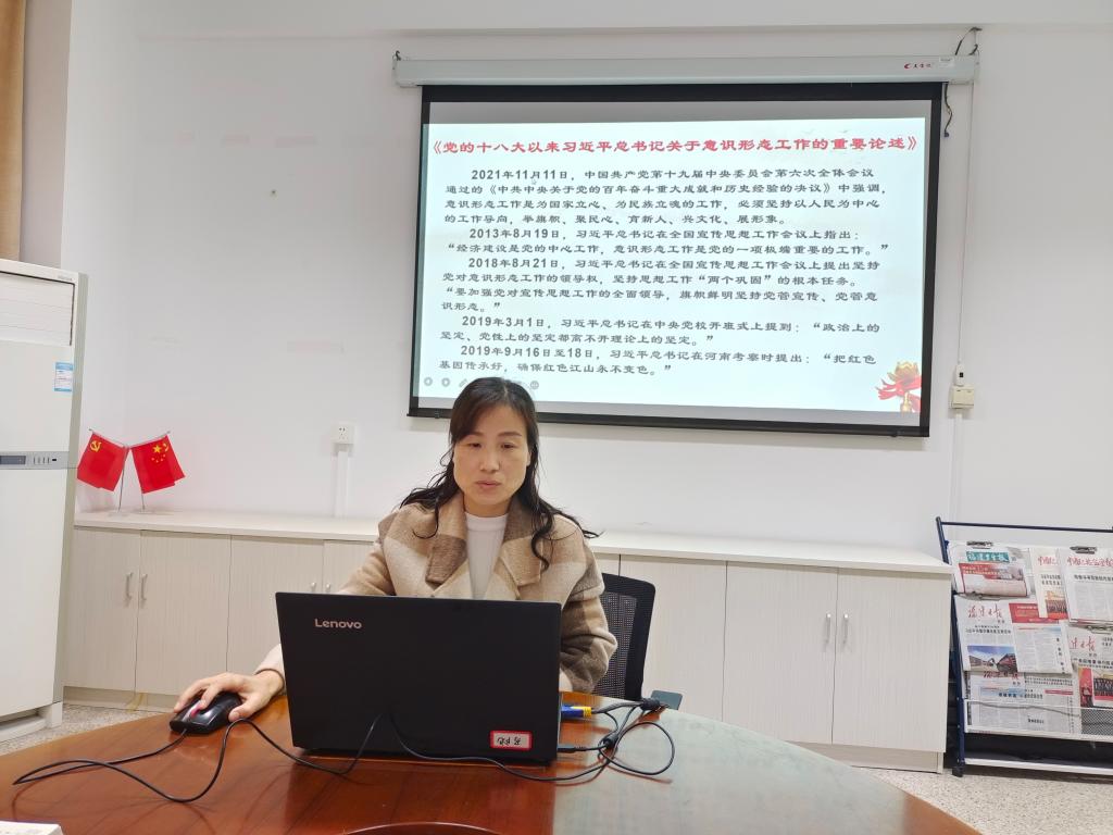 接着,来朋珍同志领学习近平关于意识形态的相关讲话内容。她强调:意识形态工作是为国家立心、为民族立魂的工作,全体党员教师要清醒地认识到自身的角色和肩负的使命,牢守政治底线、法律底线、道德底线,做到守土有责、守土负责、守土尽责。