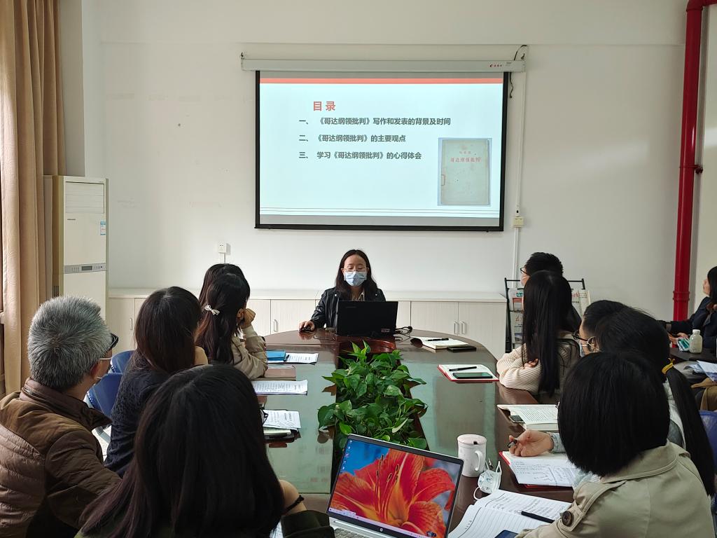 2022年4月21日上午,直属马克思主义学院党支部第二党小组在会议室107开展经典研学分享活动。此次活动由党小组组长来朋珍主持,龙慧同志主讲,研学内容为马克思的《哥达纲领批判》。