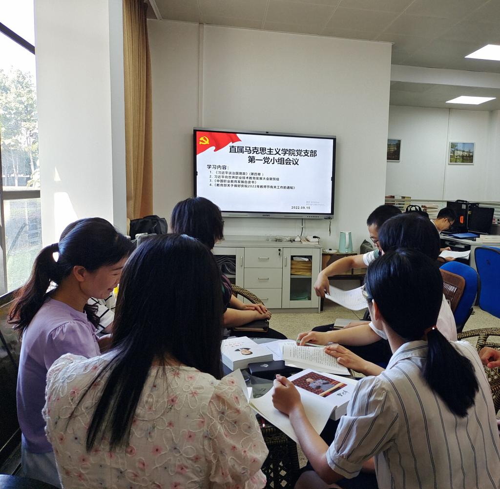 2022年9月15日,直属马克思主义学院党支部第一党小组在会议室101开展理论学习活动。本次活动由罗芸同志主持,第一党小组全体成员参加,校党委书记曾武祈对学习活动开展指导。