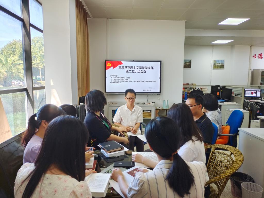 2022年9月15日,直属马克思主义学院党支部第二党小组在行政楼101进行理论学习,学习内容包括《习近平谈治国理政》第四卷、《习近平经济思想学习纲要》等主要内容。学习活动由党小组来朋珍同志主持。