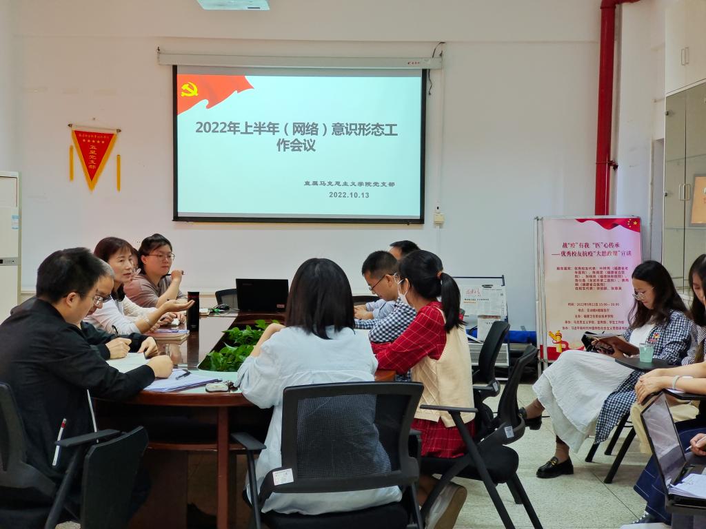 10月13日上午,直属马克思主义学院党支部2022年上半年(网络)意识形态工作会议在行政楼107会议室召开。支部全体党员参加了会议,会议由党支部副书记来朋珍主持。