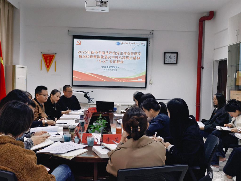 为进一步落实党组织全面从严治党主体责任,推动全面从严治党向纵深发展,深化落实中央八项规定精神,持续巩固拓展学习教育成果,11月19日,校党委委员、副校长朱扶蓉率第七检查组莅临马院开展 2025 年秋季全面从严治党主体责任落实情况检查暨深化落实中央八项规定精神“1+X”专项督查。马院党政领导班子成员、党务干部参加会议,会议由马院党总支书记熊美兰主持。