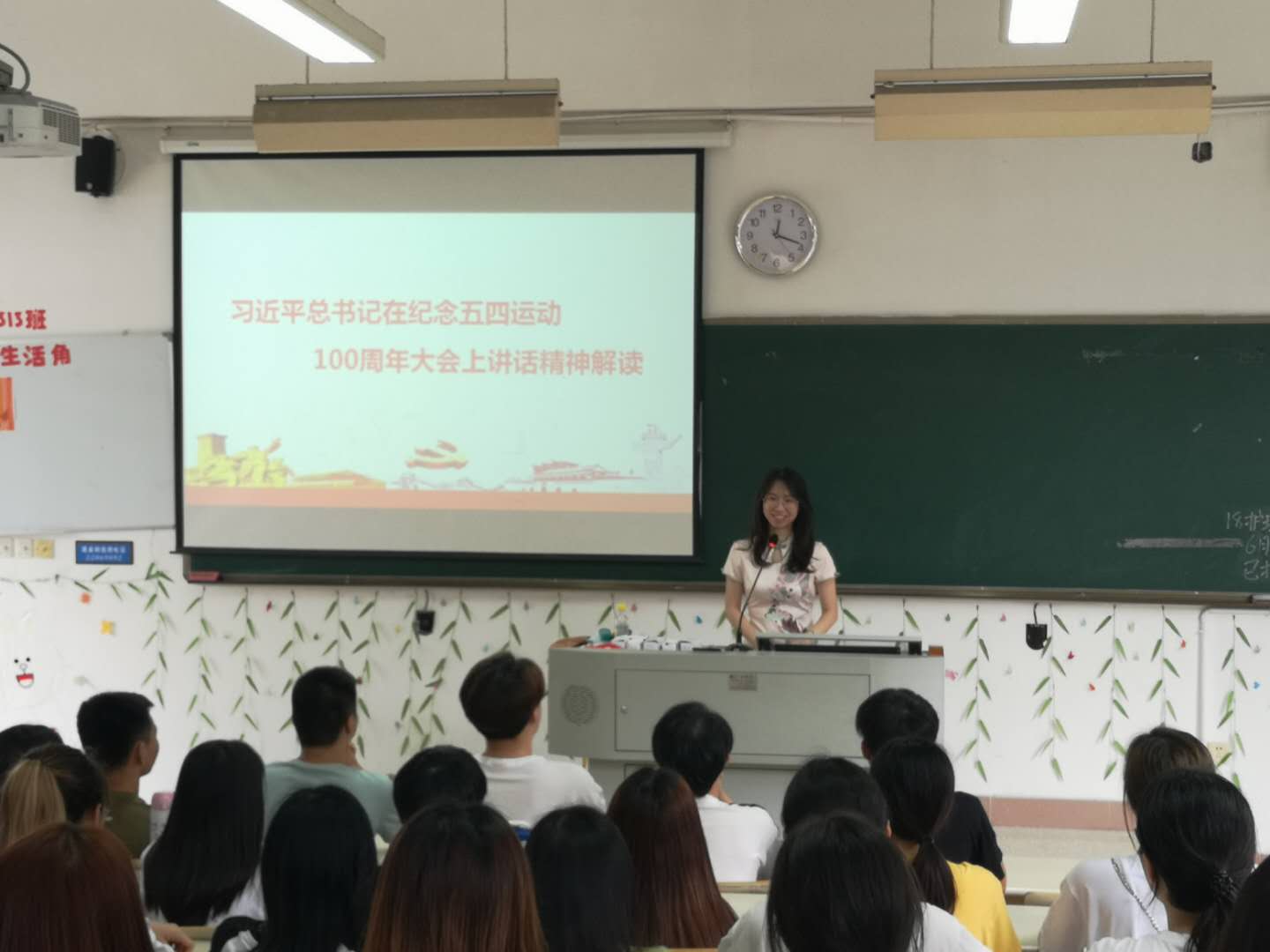 通过此次对“习近平总书记在纪念五四运动100周年大会上讲话精神”解读,同学们更加明确了新时代发扬五四精神的重要要求,并立志让青春焕发出更加绚丽的光彩。