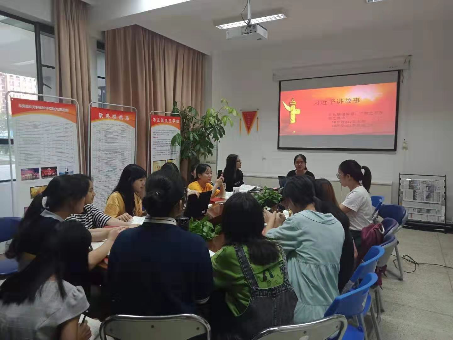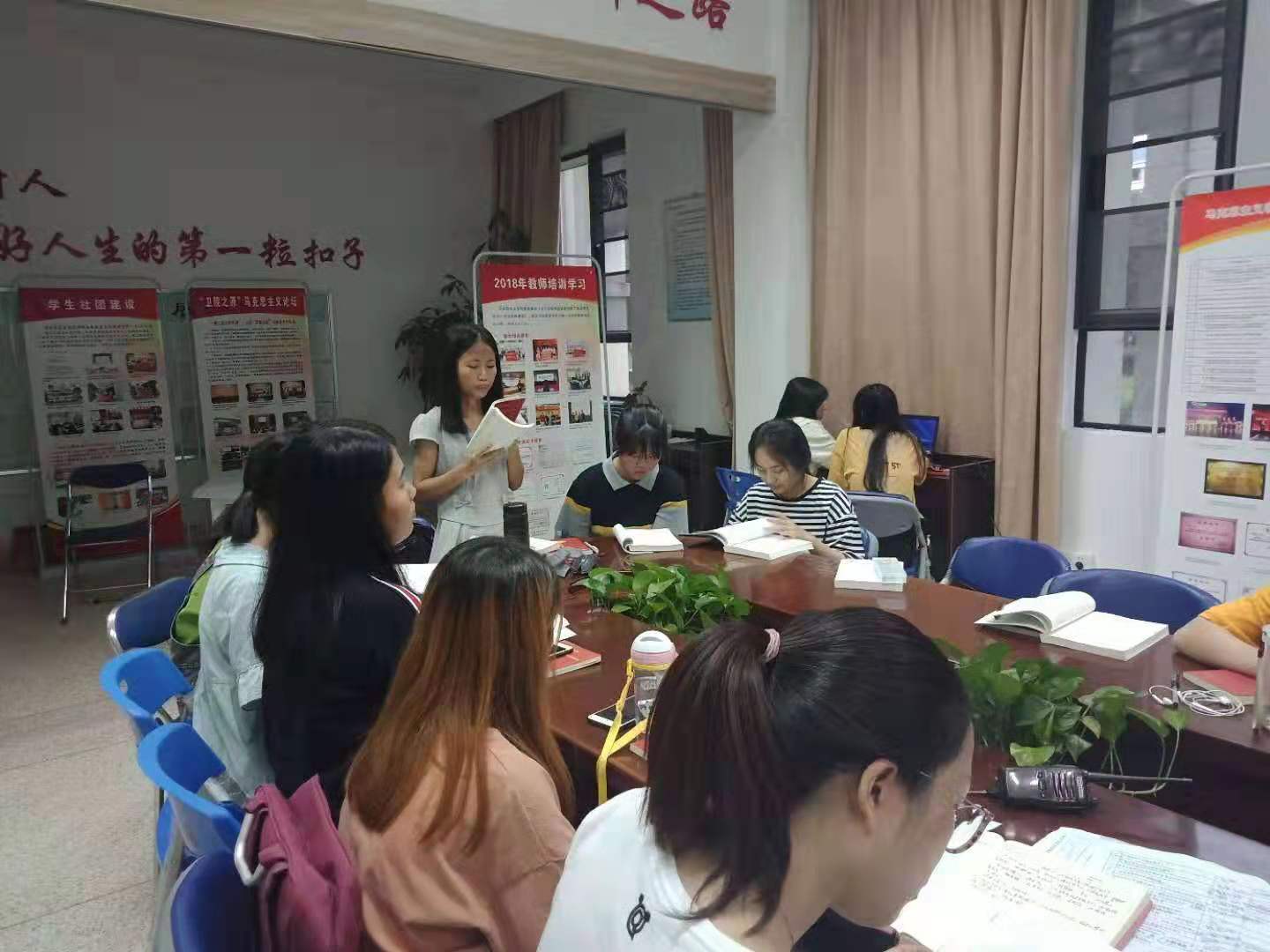 腹有诗书气自华,在闲暇的时间中阅读诗书,了解实事不仅促进了同学之间的交流与友谊,而且使我们了解当代的形式与政策,涵养精神内涵。6月15日傍晚新思想读书社“星星队”在行政楼107开展了《习近平讲故事》中的“文化融通故事”专题读书活动,此次活动由杨盈老师指导,朱水莉和陈思洁两位同学负,星星队成员参与。
