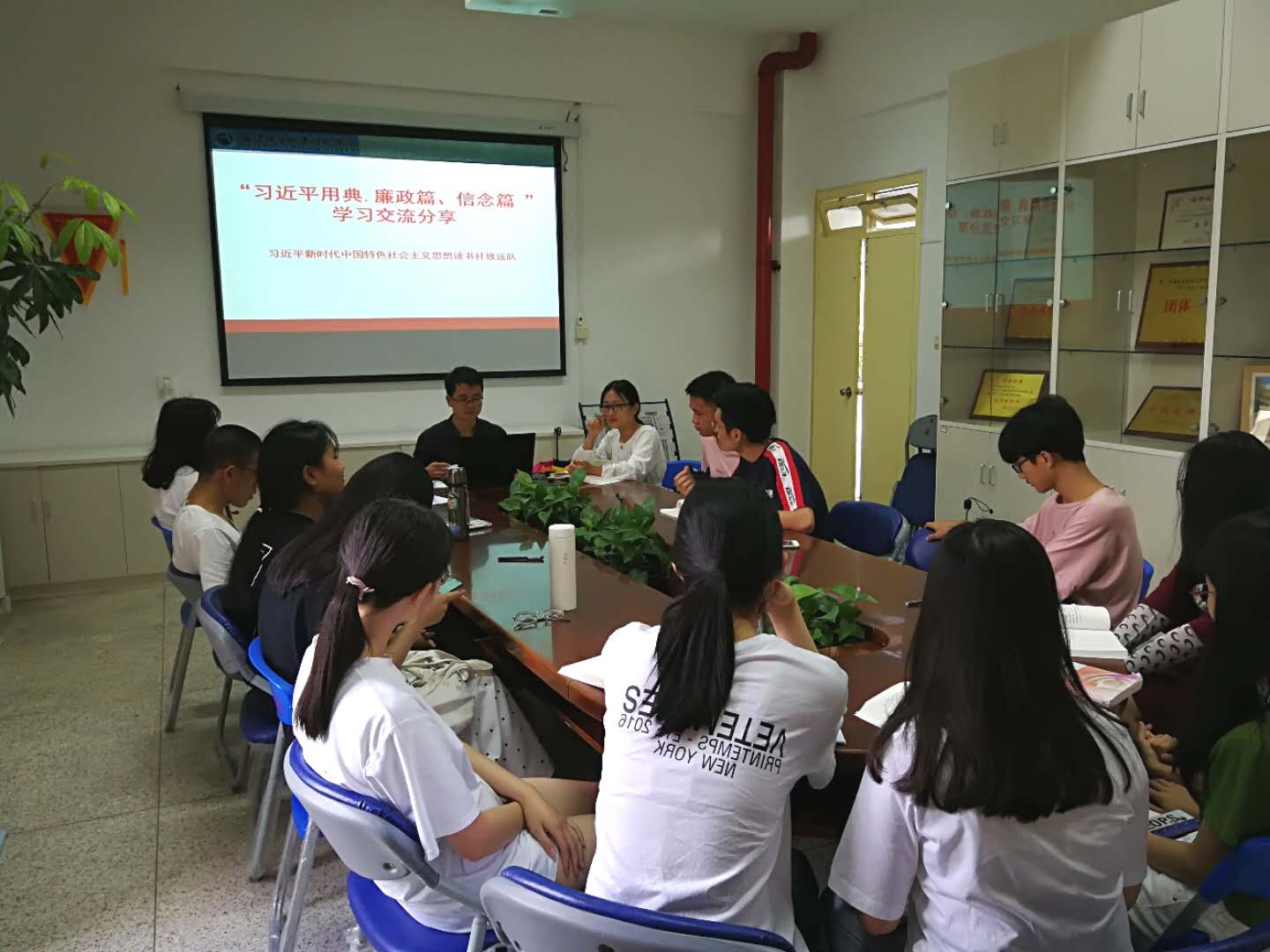 2019年6月14日,马克思主义学院习近平新时代中国特色社会主义思想读书社“致远队”在行政楼107开展读书活动。这次活动由指导老师江洪老师主持,读书社“致远队”全体成员参加了此次活动。