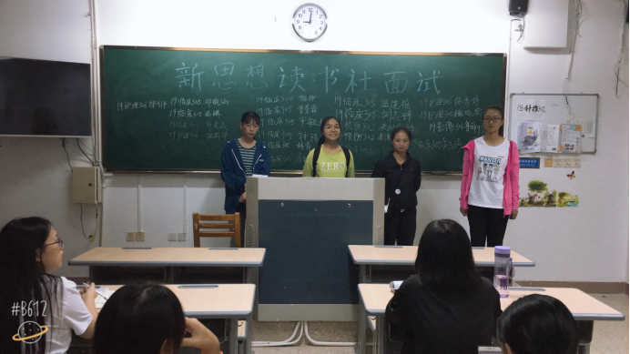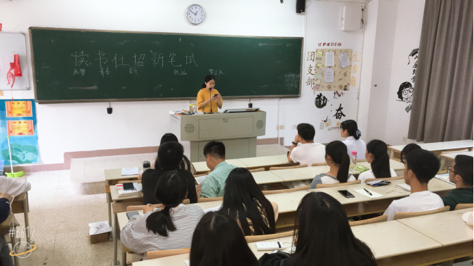 在经过前期的社团干事对各班级的大力宣传和面试读书社最终面试106人,招收新生68人。于10月24日社团新生在教215开展本次第一次会议。此次会议主要目的在于促进新老生们彼此相互认识,并进行读书社的第一次笔试。会上,老干事们向新生做了简单的自我介绍后,新生们也向大家做了自我介绍。接着由社长向新生们讲解读书的历史和发展方向,并对他们提出一点小小的要求。