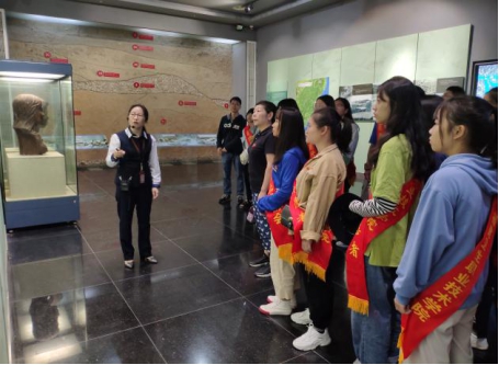 在进入展厅后,昙石山遗址博物馆的工作人员热情接待了我们,进行了详细的解说。期间老师们和同学们都专注着聆听着讲解员的解说,并询问了一些疑问。随着讲解的步步前行,从文物展厅到遗址厅,本学期的第一次博物馆讲解就暂时告一小段落。