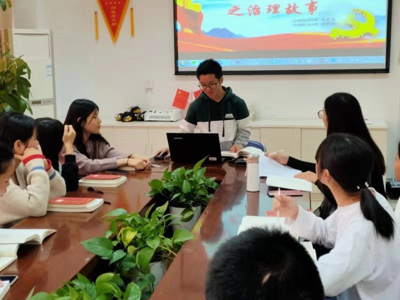 贯穿着中国历史文化之,“道”,改革发展之“道”和治国理政之“道”,《习近平讲故事》一书,承载了习近平总书记对内政、外交、治党、治国、治军的思考,具体而生动,通俗而深刻。伴随着丹桂飘香的十一月,我们于11月15号在行政楼107开展了《习近平讲故事》中的“治理故事”专题读书活动,出席会议的有指导老师杨盈,星星分队学生代表。
