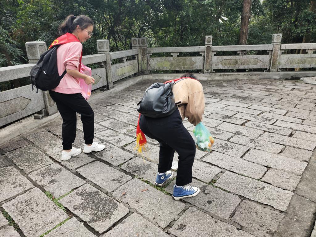 习近平总书记指出:“绿水青山就是金山银山!”。保护祖国大好河山是所有中国人义不容辞的责任。为贯彻习近平总书记的这一治理方针,2019年11月23日,读书社梦之队以及习近平《摆脱贫困》选修课全体学员一行53人在魏立娜老师的带领下,在福州鼓山登山步开展环保活动——捡垃圾。