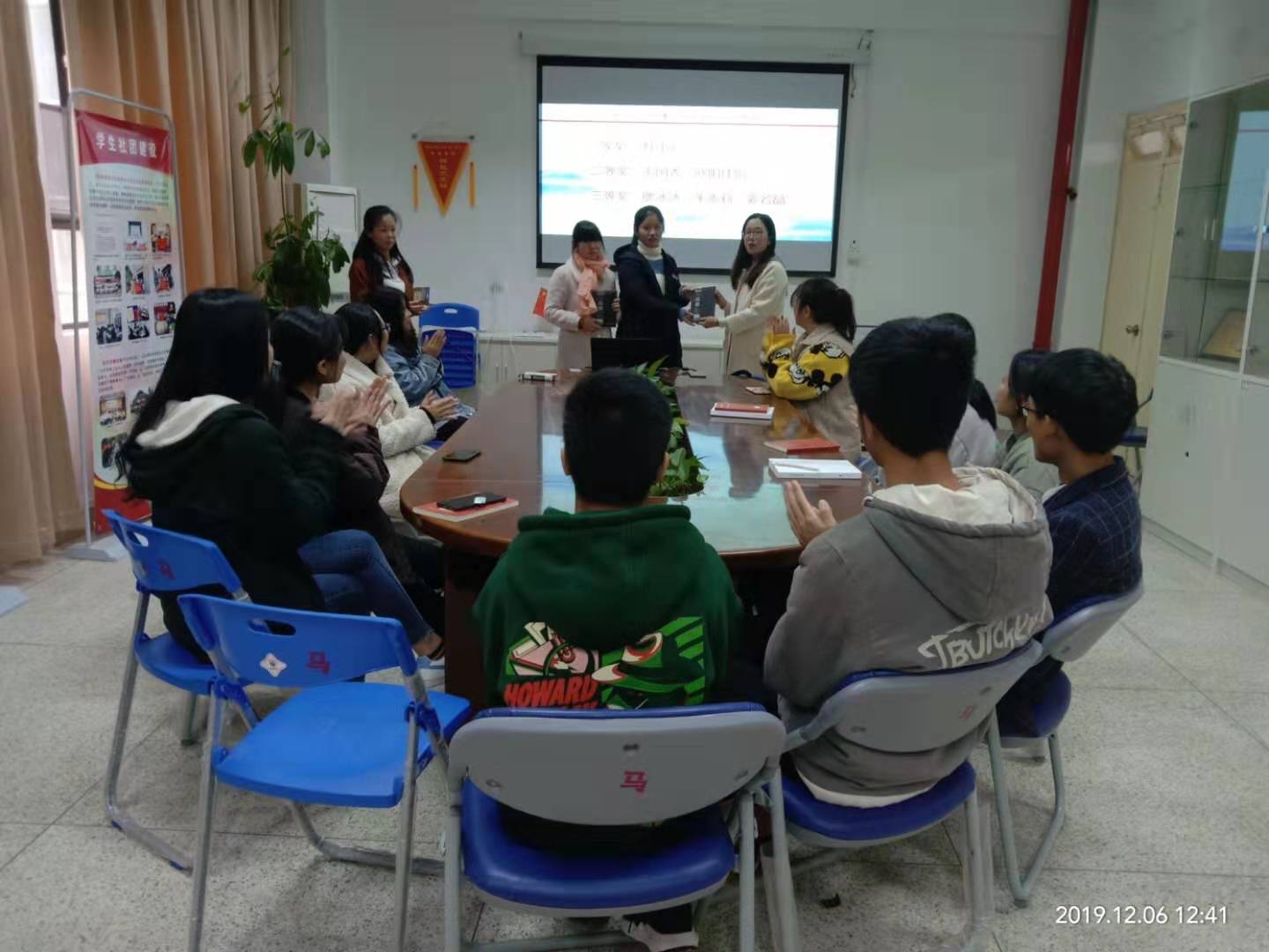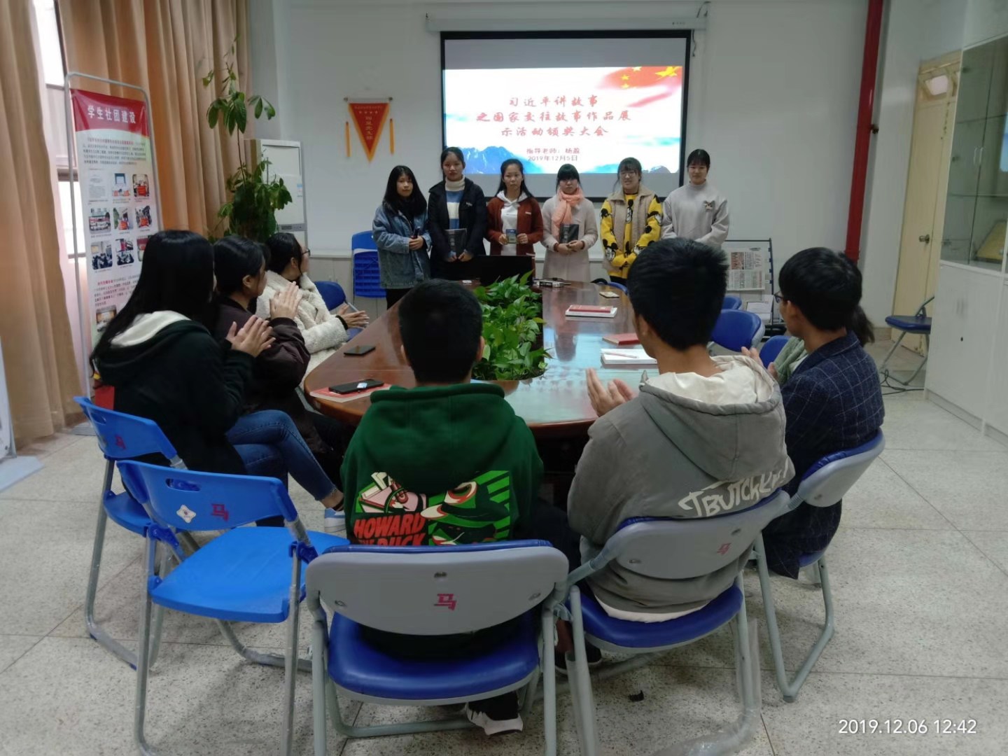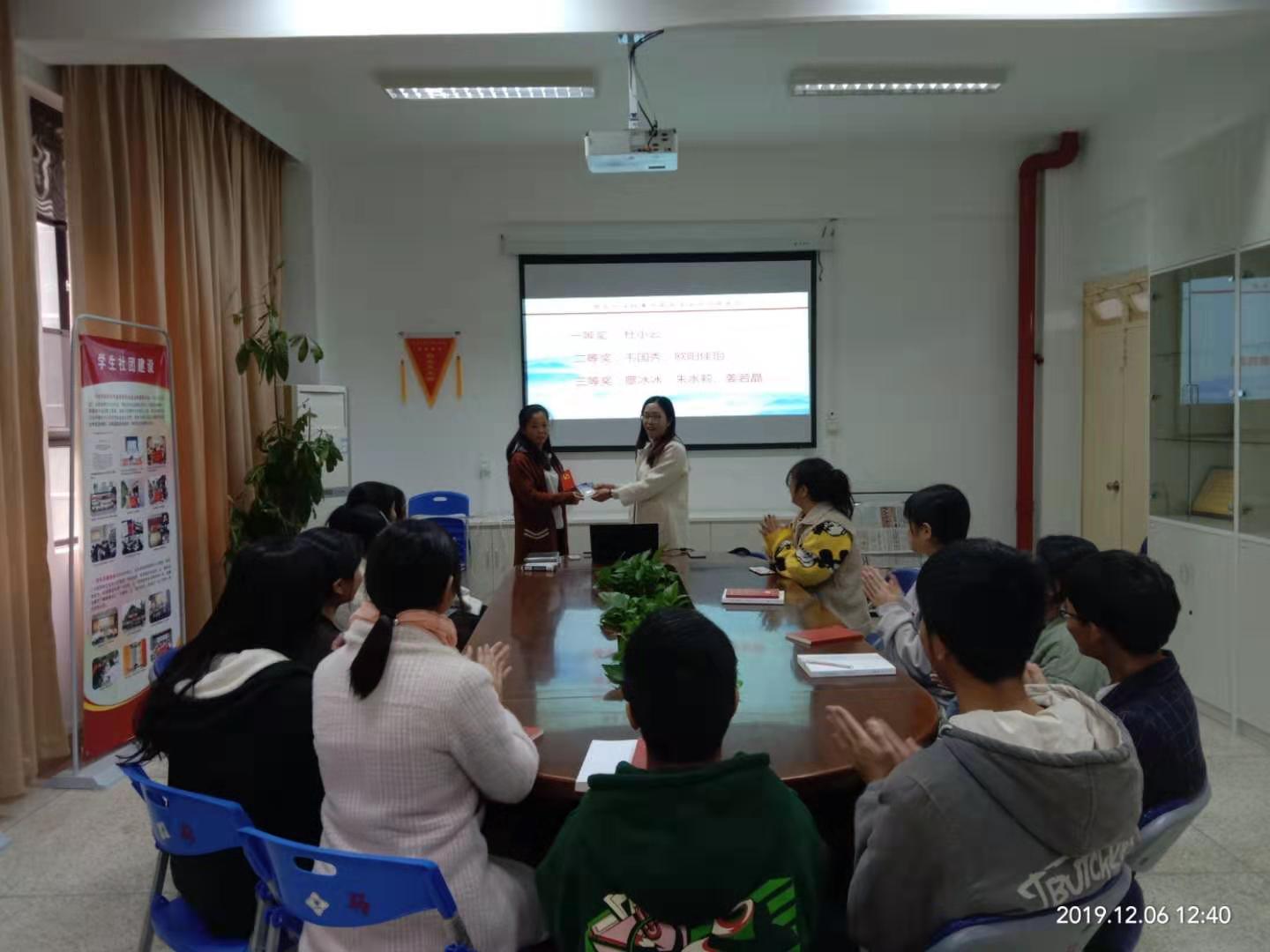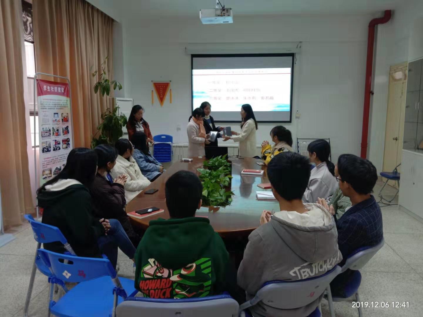 小雪节气,习近平新时代中国特色社会主义思想读书社迎来了学习成果交流报告会。12月2日上午在马克思主义学院社团研讨室开展了以 “国家交往故事”为主题的第三次学习成果交流汇报会暨优秀作品颁奖大会。此次大会由社团指导老师杨盈主持,社团全体成员参加。
