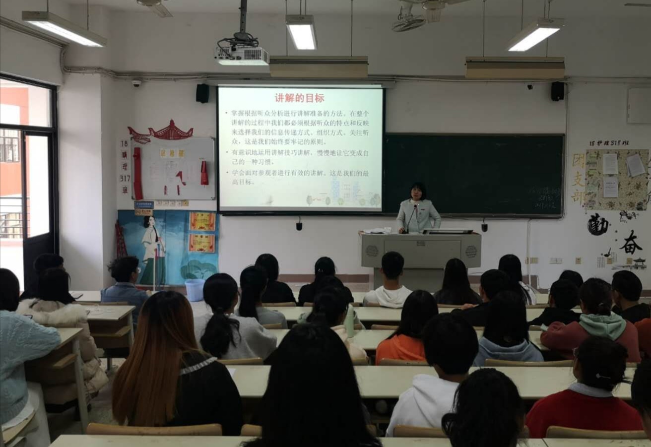 昙石山文化博物馆志愿讲解活动是时代先锋协会的品牌活动之一,社团同学担任昙石山文化博物馆义务讲解员已持续多年,一届又一届的讲解队员们通过系列讲解活动,从昙石山先人的聪明智慧中感悟勤劳奋斗精神的同时,也在讲解活动中不断提升自身的见识与沟通能力等。为加强社团同学们对志愿讲解活动的认识、进一步提升讲解水平,2019年12月12日下午,时代先锋协会指导老师丁爱芝给同学们开设讲座《靠近我温暖你——做一名快乐的志愿讲解员》。丁老师在讲座中分享讲解技巧,并指出除了语言表达外,良好的精神面貌和优雅的行为举止对讲解员也是非常重要的;讲解不只是简单的讲述和解释,还是一门知识和语言高度综合的艺术,在面对不同知识结构、不同年龄层次的观众时,根据观众不同的知识需求能够随机应变才是成功的讲解。丁老师希望同学们在讲解文物背后故事的同时,积极弘扬“奉献、友爱、互助、进步”的新时代志愿精神,心存大爱图奉献,愿以无私付人生,做一名快乐的志愿讲解员。