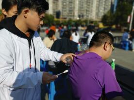 2019年12月14日,时代先锋协会在昙石山民俗园举办了“青春流动,温情传递”的义诊活动。冬天,正是疾病高发的季节,为了增强周围社区居民对健康的关注,加强对冬季防病的健康意识,义诊现场设有血压测量、推拿、拔罐、刮痧、保健咨询等项目,帮助群众更好地掌握和了解自己的身体健康状况。还有组织一部分同学出去分发健康宣传资料。