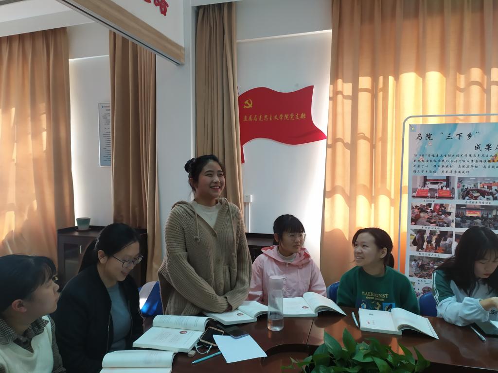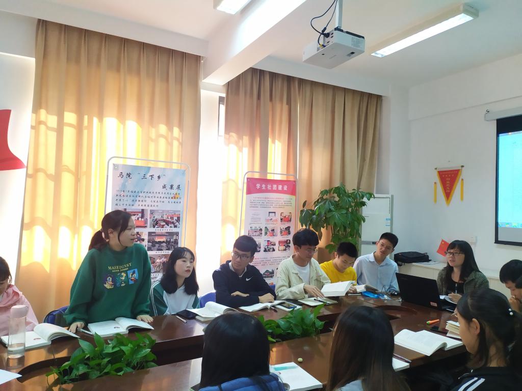 2019年1月6日下午,习近平新时代中国特色社会主义思想读书社原梦队在马院研讨室进行本学期最后一次交流学习。在学习前同学们都做了充分的准备,认真对待每一次学习是身为新时代青年的责任和义务。正如习近平总书记曾说的:“得其大者可以兼其小”。只有把人生理想融入国家和民族的事业中,才能最终成就一番事业。珍惜韶华、奋发有为,勇做走在时代前面的奋进者、开拓者、奉献者,努力使自己成为祖国建设的有用之才、栋梁之材,为实现中国梦奉献智慧和力量。”