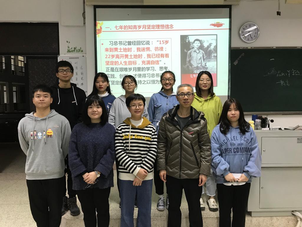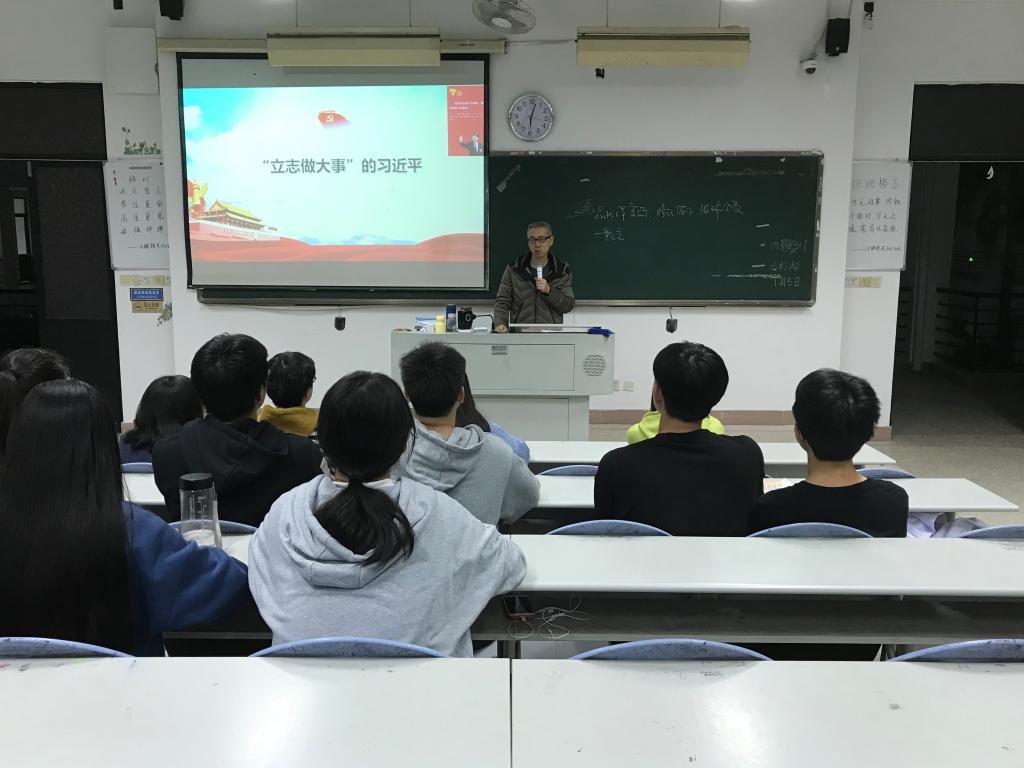 活动伊始,林诗颖同学做了学习《习近平的七年知青岁月》心得体会的交流发言,她发言的题目是《生也有涯而知也无涯——读〈习近平的七年知青岁月〉有感》,林诗颖认为习近平总书记在陕北插队时就做到了爱读书读好书善读书,非常值得我们大学生学习,她认为大学生要端正学习态度,发扬刻苦学习的精神,养成良好的思维习惯,让知识伴随我们一生。接着,胡济林老师给大家做了《“立志做大事”的习近平 》专题学习指导。胡老师首先给大家介绍了最近发行的《习近平在厦门》《习近平在宁德》这两本书,他说《习近平的七年知青岁月》是讲述青少年时期的习近平,只是“立志做大事”的开端,而习近平后来的从政经历则是“立志做大事”的延续,所以希望大家课后去学习这两本书,领会其中的精神实质。然后,胡老师的讲课转入正题,他从七年的知青岁月坚定理想信念、写了10份入党申请书终于入党、三个志愿都填清华大学、高起点规划城市发展等几个角度,结合相关的故事,带领大家领略习近平总书记坚定的共产主义信仰和宏图大志。胡老师鼓励同学们,要联系自身实际来学习习近平总书记的相关著作,明确自己的定位,勇敢地探索和实践,每一次小机会,小尝试,小展示,看似不起眼,却是经验之塔上的坚实堆砌,谁都不知道自己会在哪一秒惊艳于世,一鸣惊人。最后,胡老师希望同学们好好备战期末考试,争取优异的成绩。