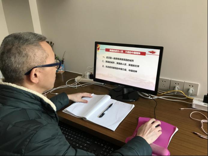 第二个环节是由胡济林老师宣讲《英雄的武汉人民,不屈的中国精神》。胡老师主要是从“武汉是一座具有一英雄基因的城市”、“英雄的城市,英雄的人民,英雄的壮举”、“抗击疫情展观的中国力量、中国精神”等三个方面进行宣讲。胡老师通过大量的数据和案例,通古博今,中外对比,深入解读武汉人民的英雄气概和中国人民的精神风貌,以及由此展现的中国力量和中国精神。
