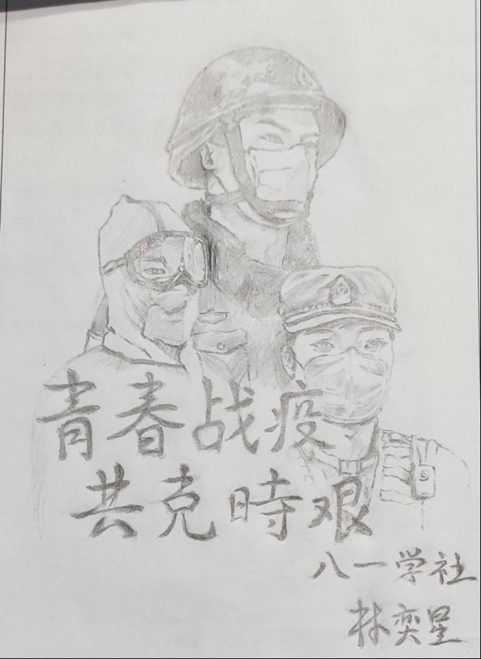 为进一步提高全体社员对新型冠状病毒肺炎疫情防控意识,展现当代大学生与时代同行的风采,增强战胜疫情的信心和决心,为打赢疫情防控阻击战贡献青春力量。近日,八一学社开展“青春战疫共克时艰”主题征集作品活动,共收集到60件优秀作品——包括油画、漫画、素描、海报、手工作品、宣传图片、优秀歌曲、动画视频等艺术作品。