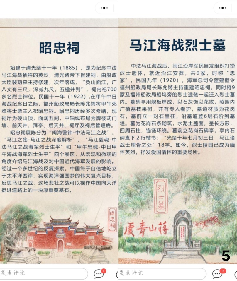 虽然讲解队队员对船政文化博物馆的讲解词已经熟记于心,对于马江海战也有着一定的了解,但是在看完海战故事后仍是感慨万分,不禁献上评论,用文字表达自己对于英烈的敬畏。