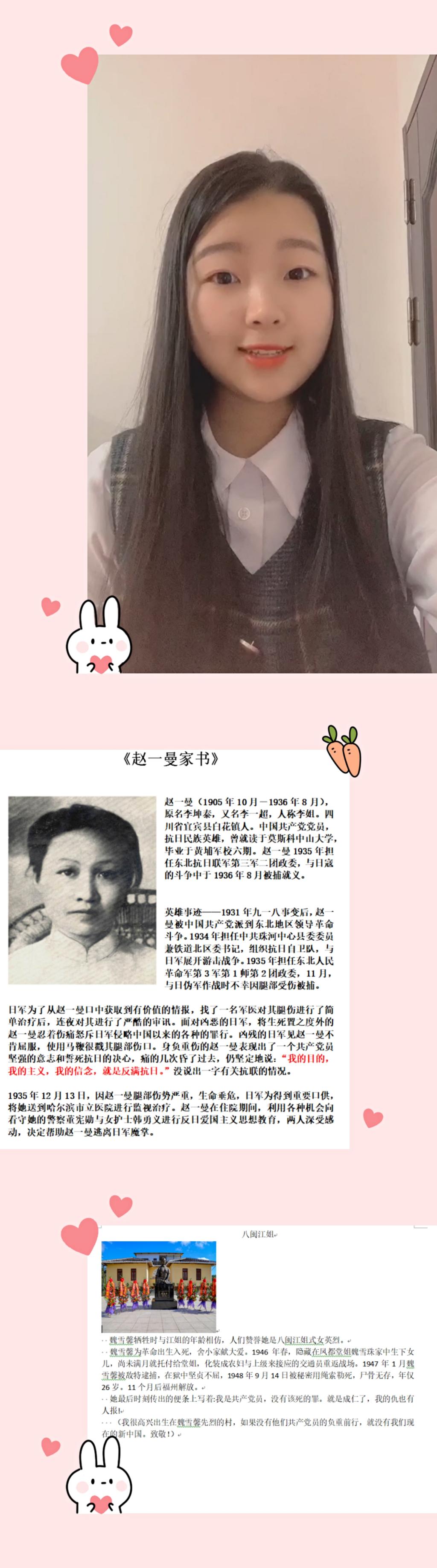 本次活动共收到近百份作品,同学们都踊跃、积极地参与活动,铿锵的气势、充沛饱满的感情,让我们寻找到了那些舍小家为大家的红色英雄,感受到了英雄们爱国情怀。活动邀请到丁爱芝、陈洪月、徐舒宁老师担任评委,经过评委老师们的讨论和筛选,最终评选出一二三等奖及优秀奖共8名,获奖名单如下: