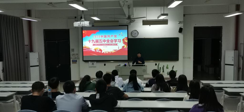 为深入学习贯彻习近平新时代中国特色社会主义思想及了解全面建设社会主义现代化国家新征程,2020年11月10号晚读书社梦之队于教学楼109由指导老师魏立娜宣讲党的十九届五中全会精神。