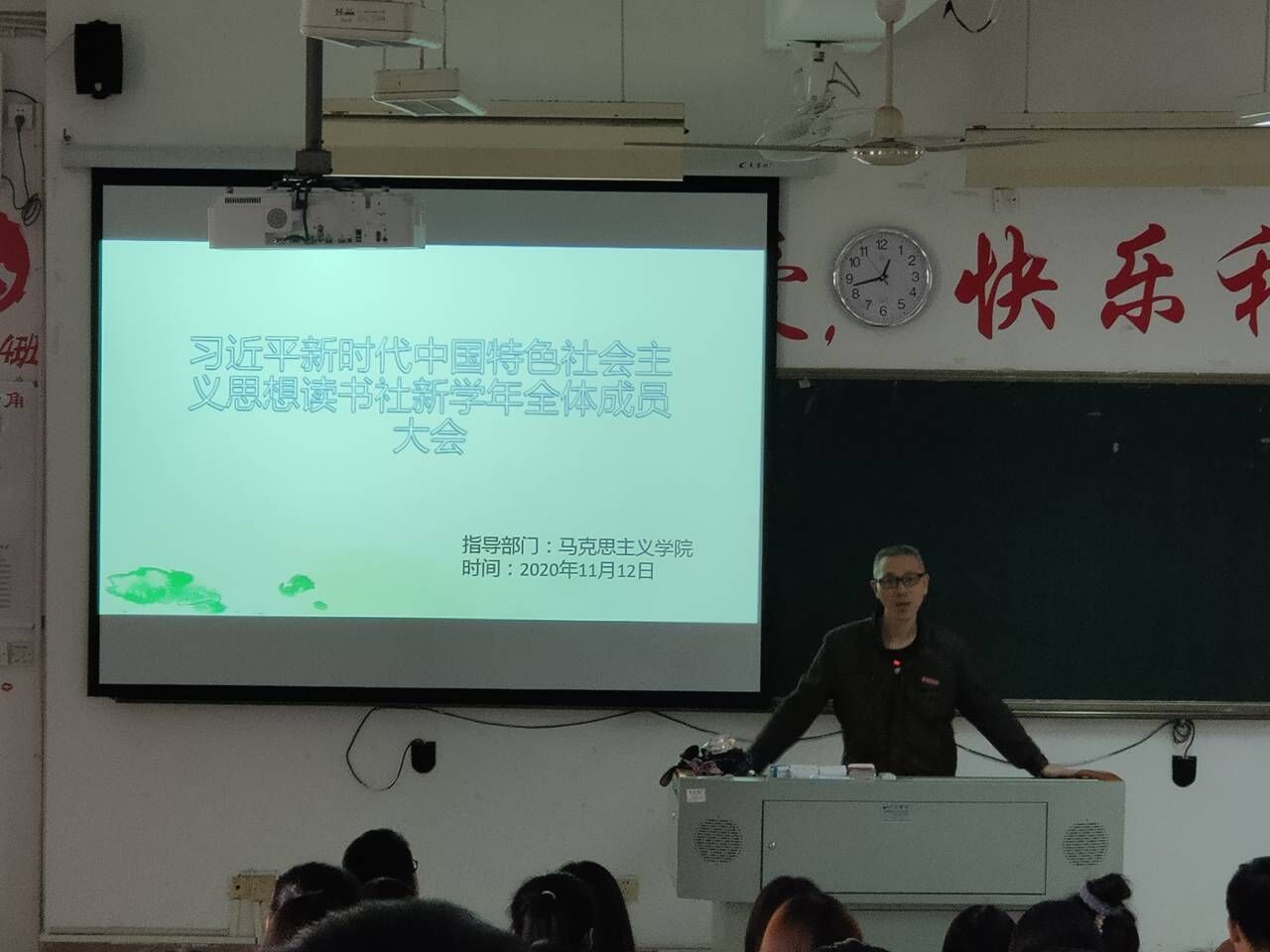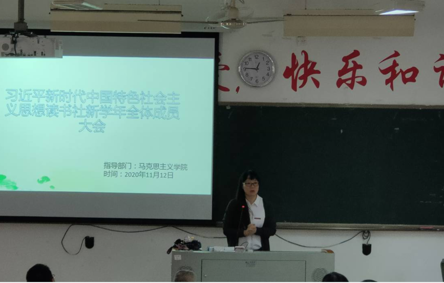 冬日迎暖阳,新思想读书社于2020年11月12日在教学楼召开全体社员大会,读书社19级干事、全体20级新成员约150人,与熊美兰、胡济林、江洪和郑冰等指导老师。