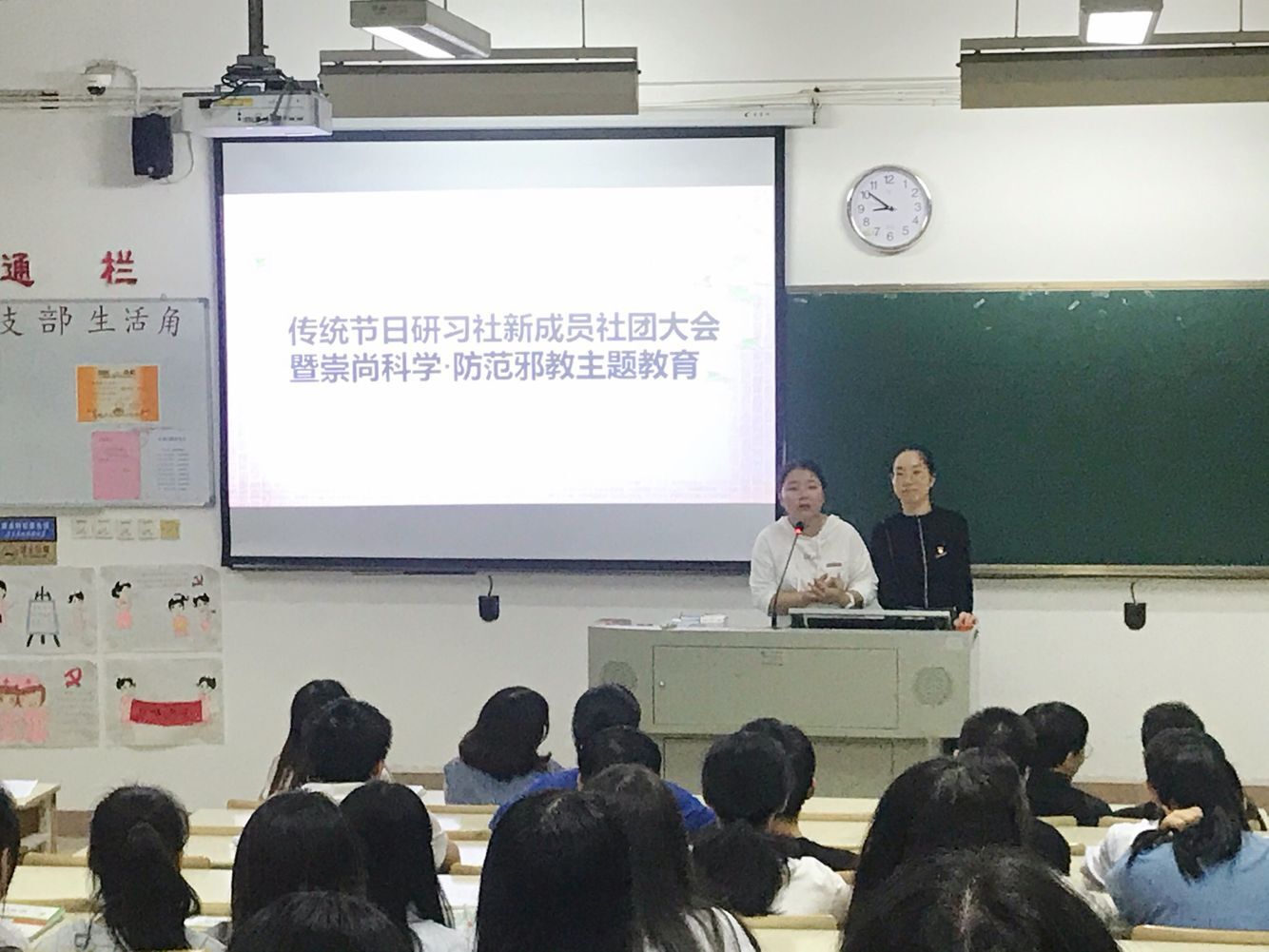 2020年11月19日晚,我校传统节日研习社在教学楼115教室召开了传统节日研习社新成员社团大会暨“崇尚科学 远离病毒 防范邪教”宣传教育大会。