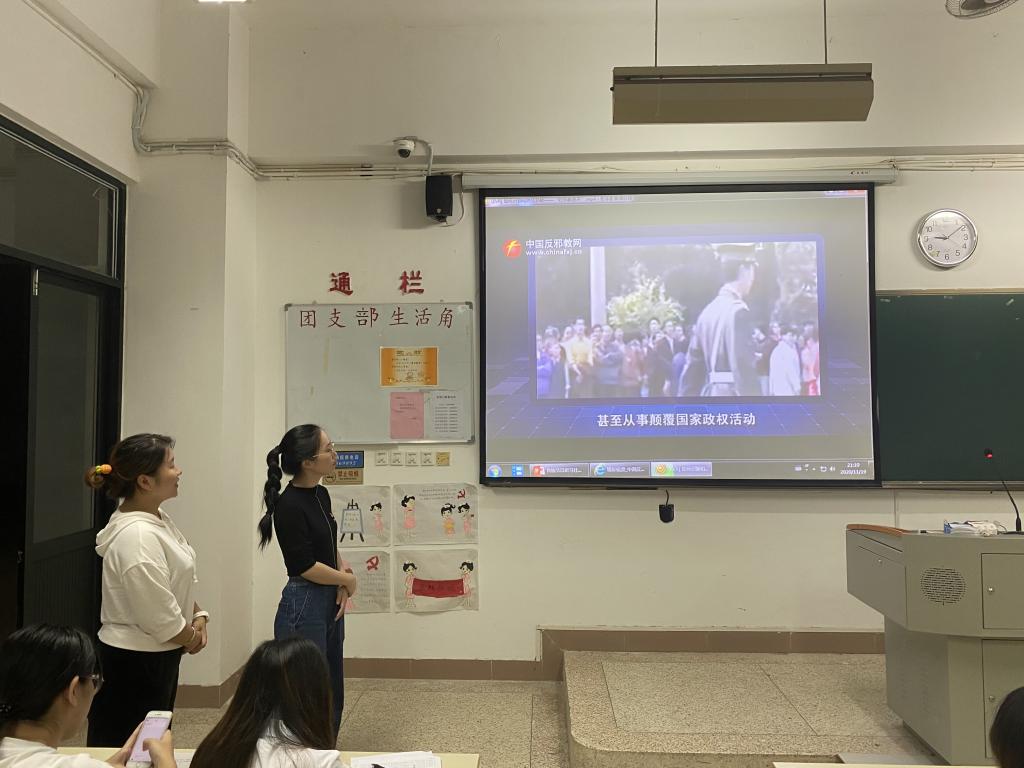 为了进一步增强学生防邪、反邪思想意识,营造浓厚的防邪、反邪校园氛围,传统节日研习社还专门召开了“崇尚科学 远离病毒 防范邪教”宣传教育大会,大会由社团指导老师林美辰和颜冰凤主持,同学们通过收看《如何识别和防范邪教——对邪教说“不”》警示教育短片,直观了解到邪恶的可怕和丑恶,清楚认知到了邪教的危害性,提高了识别和防范邪教的能力。