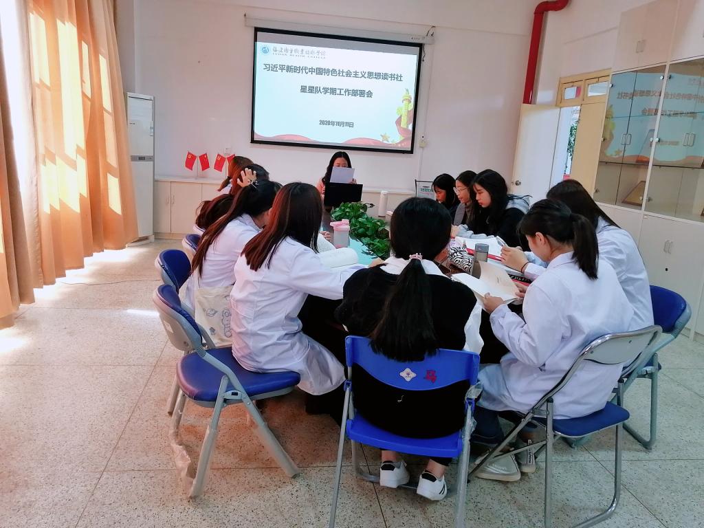 2020年11月11日,习近平新时代中国特色社会主义思想读书社的星星队成员在行政楼107会议室进行新学期的工作部署与新社员见面交流会。旨在通过此次的会议,使成员更加了解读书社,加强队员间的交流,提高团队凝聚力。