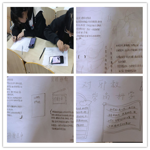 本次活动的另外一个重要环节是开展崇尚科学打击邪教主题宣传活动,我们一同观看了反邪教视频《如果识别和防范邪教——“对邪教说不”》,让队员们了解到了什么是邪教、邪教组织的特征、邪教的危害、当前我国较为活跃的邪教组织等几个方面的内容。队员们根据视频内容和对邪教组织的一些认识绘制手抄报,他们发挥自己的聪明才智,用自己手中的笔绘制了一幅幅图文并茂,并能表达自己崇山科学、抵制邪教的思想,这些作品虽然笔墨稚嫩,但主题突出鲜明,构思精巧,充分地展现梦之队队员的才华。