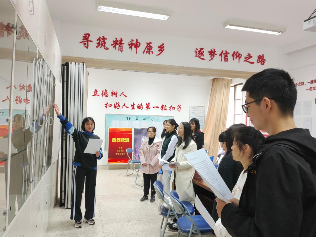 随后,熊老师对讲解稿作了学习讲解,对讲解手势和站姿进行指导。接着由成员们作训练示范,讲解队队长19级蔡雅岚同学踊跃报名首个示范。在她铿锵有力的讲解下,热烈的现场气氛激发了成员们的积极性。20级的邓新同学及何雨婷同学不愧是后起之秀,虽未实地进行讲解,但是他们的讲解无不透露出自信的力量。