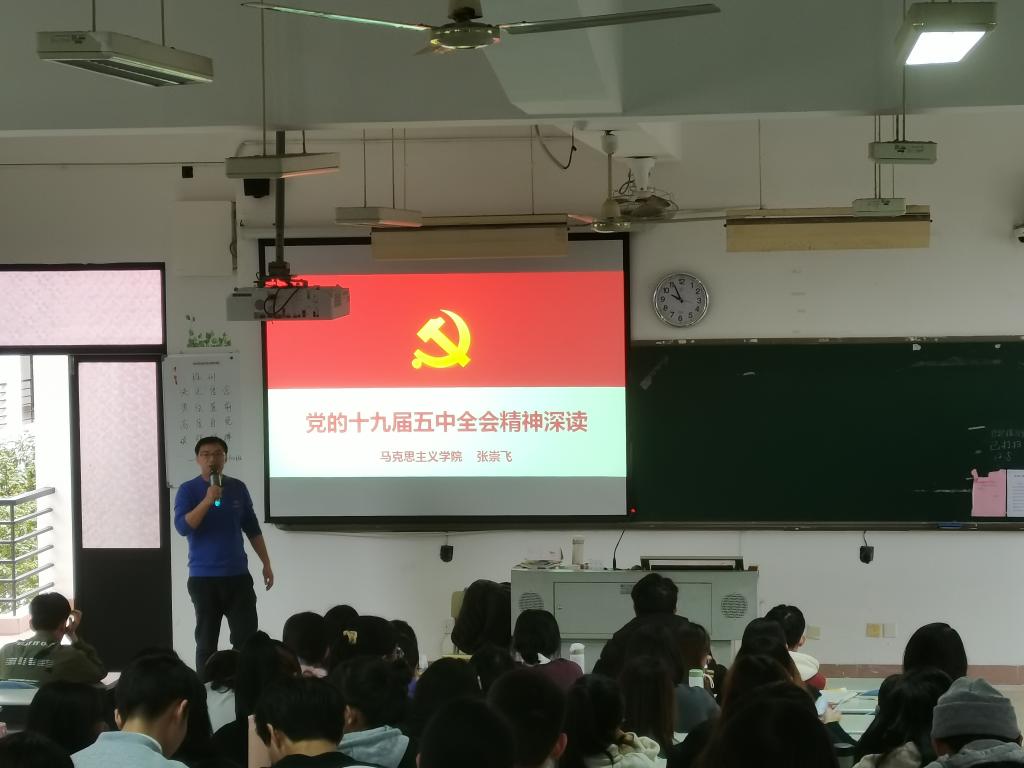 根据马克思主义学院统一安排,2020年12月7日和8日,张崇飞老师分别为八一学社全体社员、20级药学301、302和20康复301、302及20中医康复301班学生中对党的十九届五中全会精神进行了深度解读。两场宣讲会共300余名同学参加。