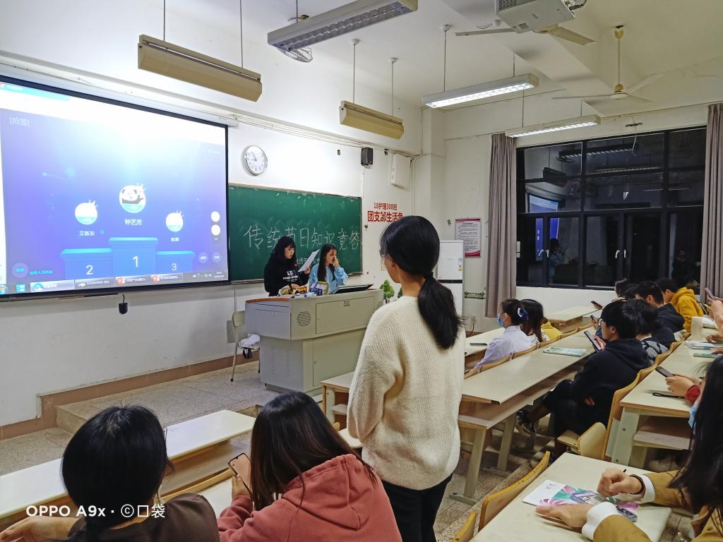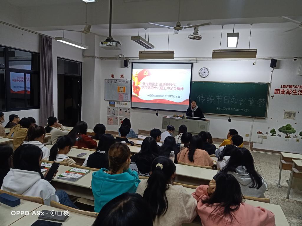 为了进一步深入学习贯彻党的十九届五中全会精神,坚定文化自信,传承和弘扬中华优秀传统文化。2020年12月3日,传统节日研习社在教学楼115社开展了深入学习贯彻党的十九届五中全会精神宣讲会暨传统节日知识竞答活动。