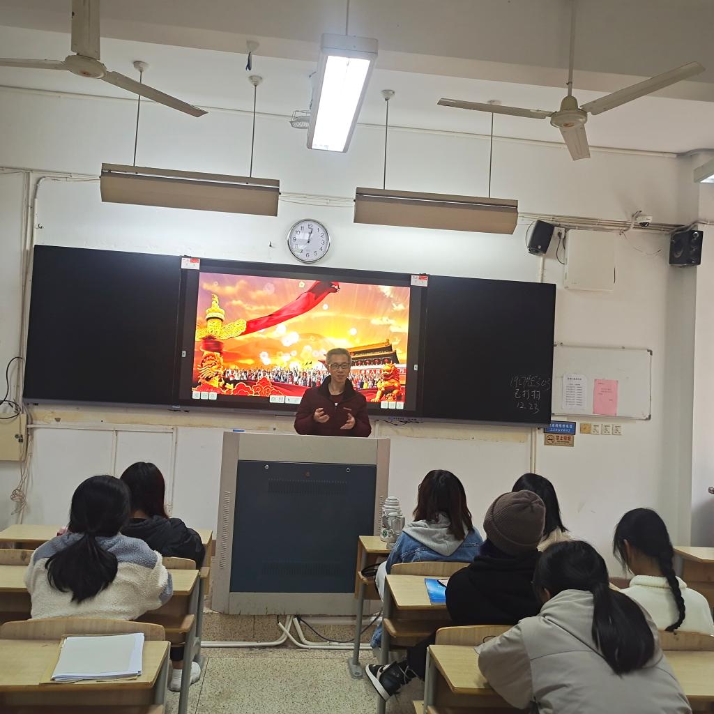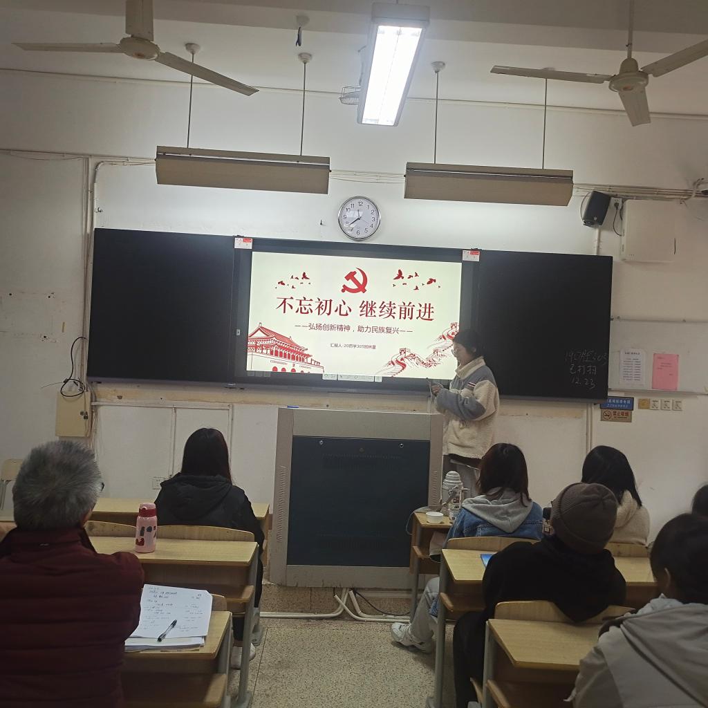 2020年12月24日中午,习近平新时代中国特色社会主义思想读书社宣讲团在胡济林老师指导下,在教学楼103举行党的十九届五中全会精神第二次内部宣讲。同学们在第一次宣讲的基础上对ppt和文档进行了修改,宣讲人还是魏青、林星两位同学。