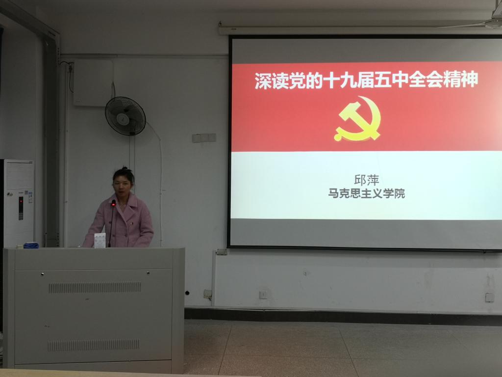 邱萍老师从规划《建议》起草、规划《建议》亮点、规划《建议》突出民生议题、双循环的新发展格局、如何实现2035年远景目标等五个方面进行了系统宣讲阐释,既讲清楚宏观上的政策举措,又不时引用接地气的鲜活案例,让学生们对五中全会精神有了切身的体会。邱萍老师勉励大家把小我融入国家发展的大我之中,明确人生目标,找准奋斗着力点,学好本领,潜心钻研,掌握观察和认识世界的正确方法,努力成为国家栋梁。