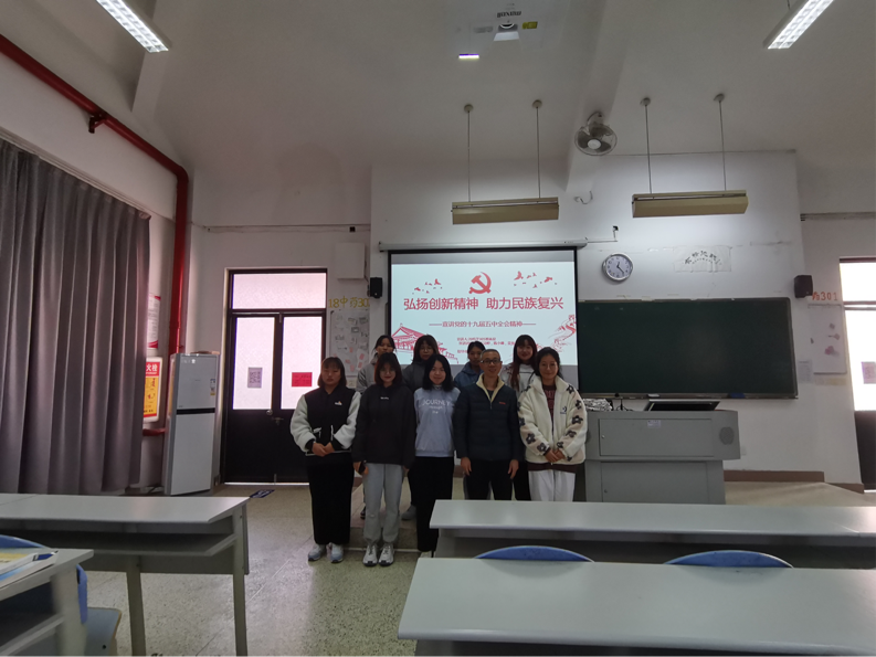 2020年12月30日上午,习近平新时代中国特色社会主义思想读书社宣讲团在胡济林老师组织下,在教学楼309为20卫管301、302、中养生301班举行“弘扬创新精神助力民族复兴”的党的十九届五中全会精神专题宣讲。